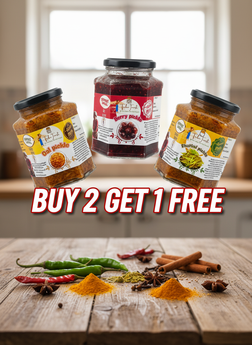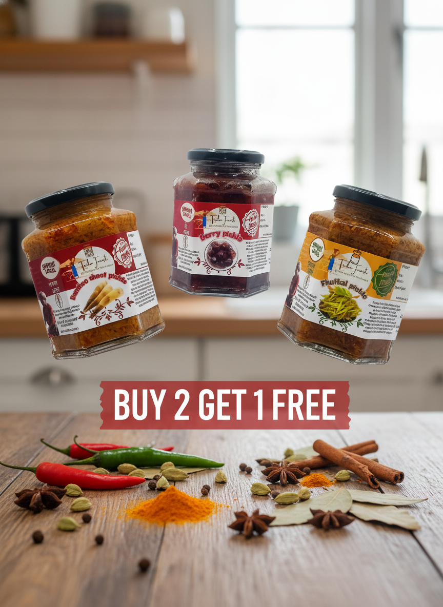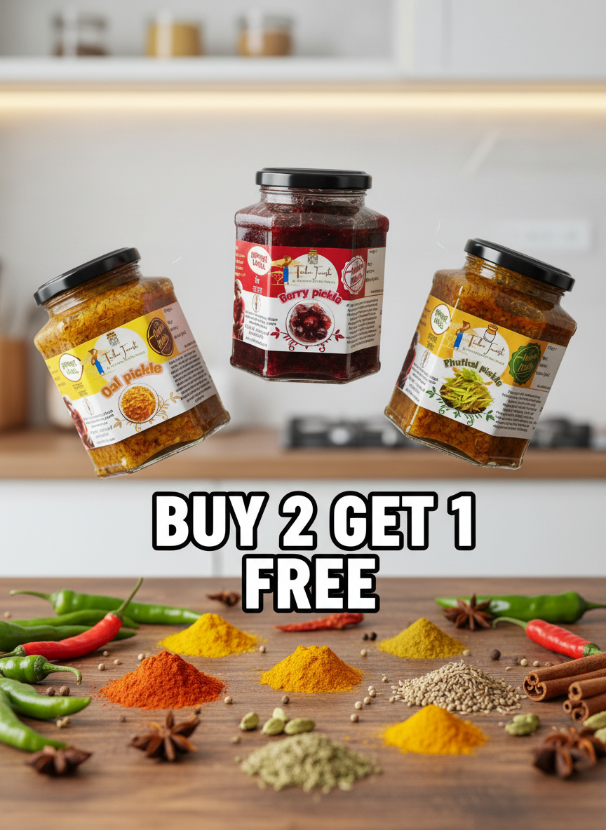 Combo- Sandhana pickle(450gm)+Futkal pickle(450gm)+Berry pickle(450gm) Buy 2 get 1 free
